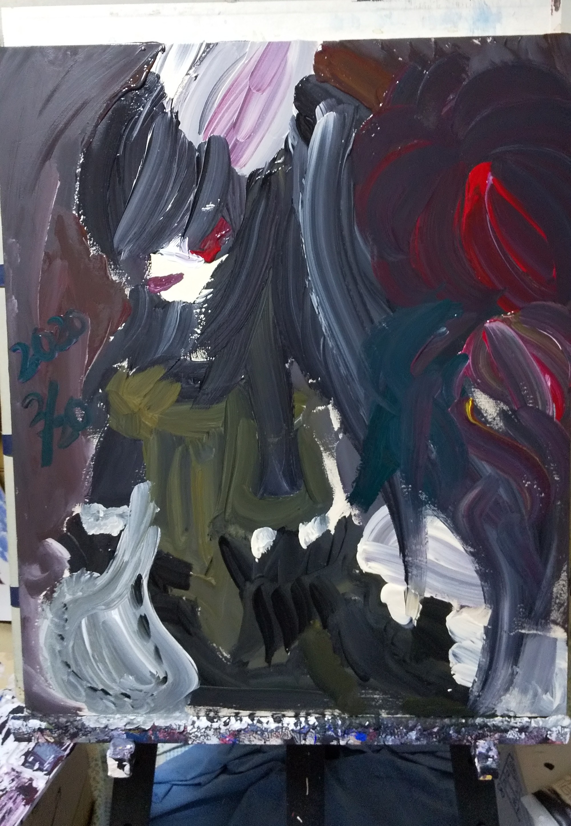 今までのアクリル絵の具はガッシュ(不透明絵の具)を使っていたが、より絵画的表現を目指し、リキテックスアクリリックカラーを使ってみた初作品。